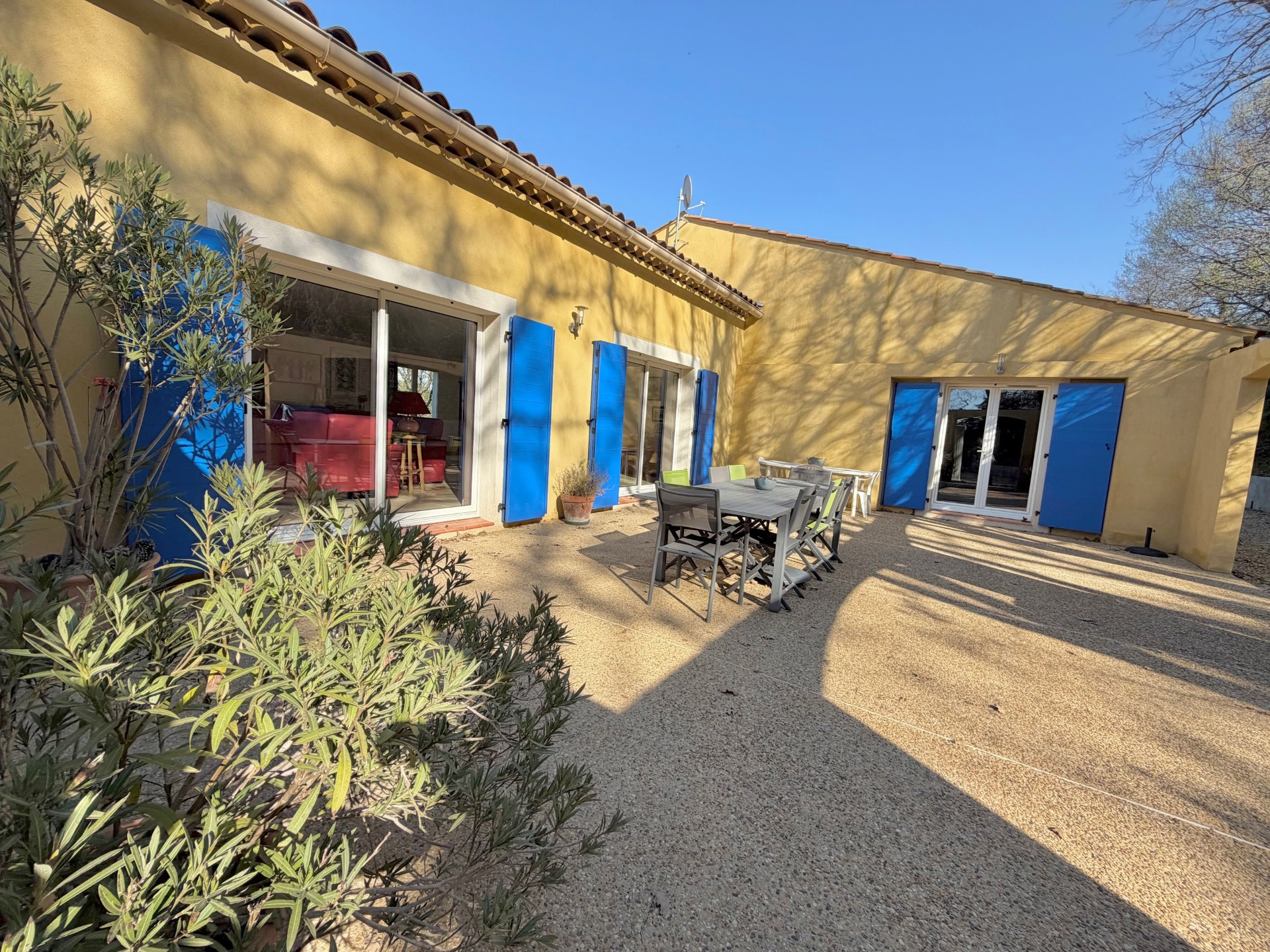 Cette demeure provençale, à l’agencement fonctionnel et harmonieux, développe 150 m² habitables. L’entrée dessert un vestiaire et un WC indépendant. Le vaste séjour traversant (env 50m²), baigné de lumière grâce à ses nombreuses ouvertures, se compose d’un salon, d’un espace cheminée avec insert et d’une salle à manger. Il s’ouvre sur une grande terrasse exposée plein Sud et bénéficie également d’un accès côté Nord.