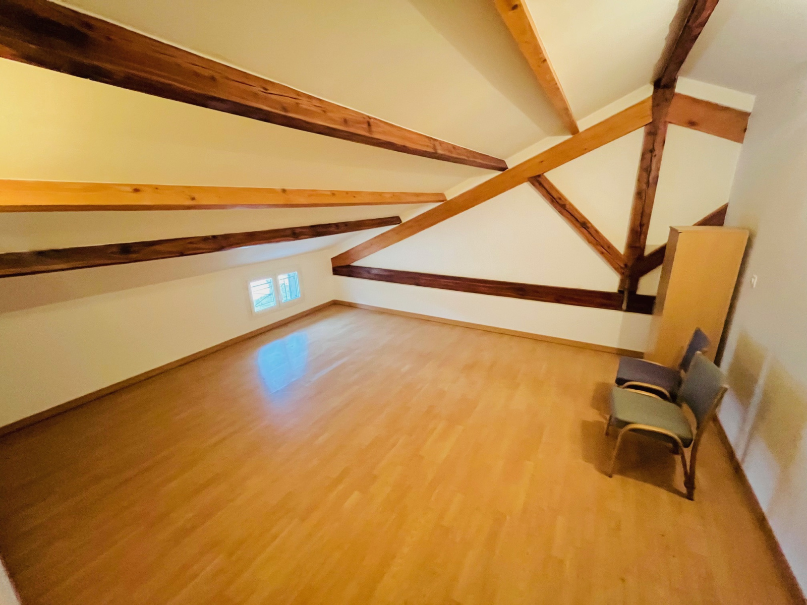 L’habitation offre environ 108 m² de surface au sol (dont 74,25 m² Loi Carrez, les chambres étant mansardées). Elle se compose d’un séjour lumineux de 27 m², ouvert sur l’extérieur, d’une cuisine indépendante de 8 m², de trois chambres sous pente (surfaces au sol de 23 m², 21 m² et 17 m²), d’une salle de bains et de WC indépendants.