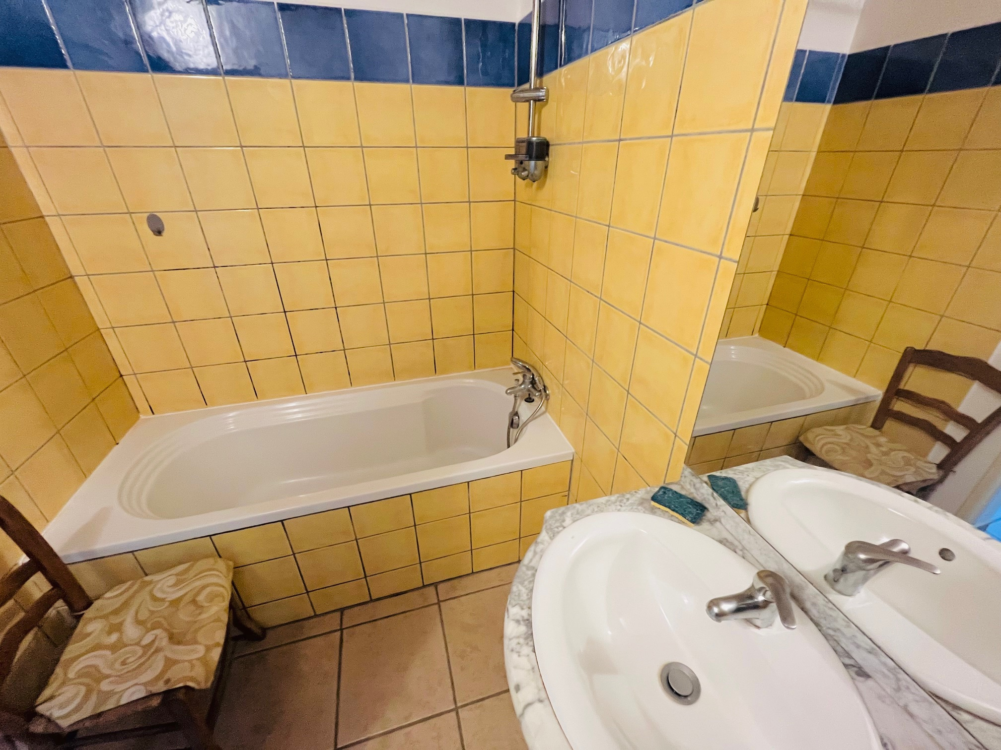 Un garage fermé et carrelé, avec accès direct à l’intérieur de la maison, complète l’ensemble.