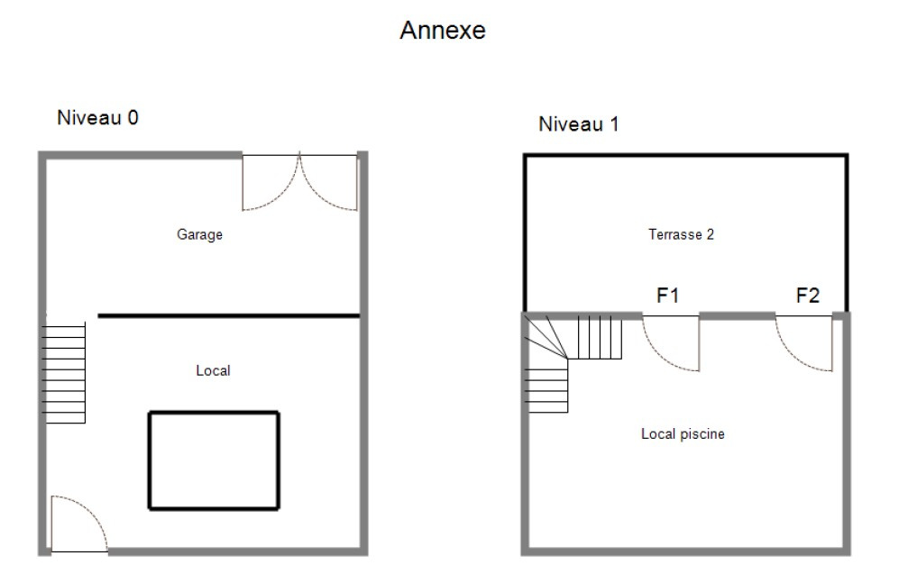 Au niveau inférieur, une seconde entrée côté Sud dessert une buanderie avec salle d’eau et WC.