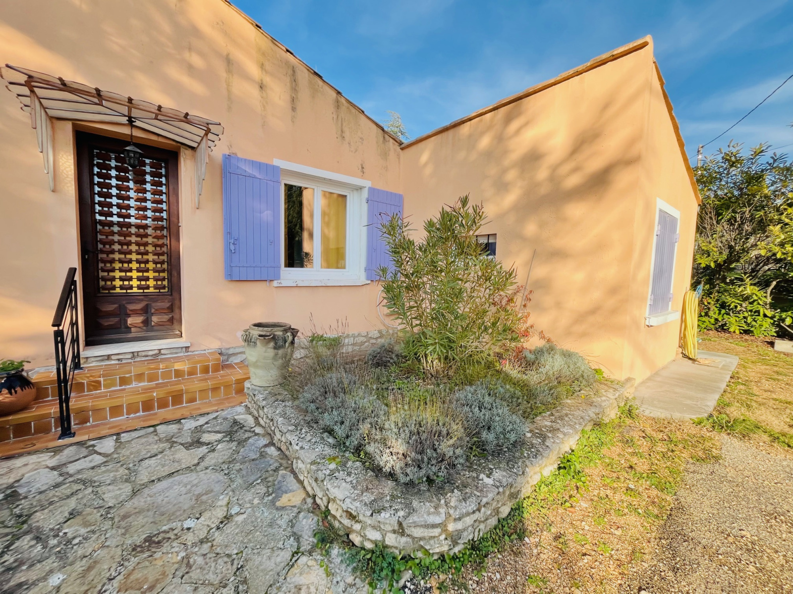 Nichée sur un beau terrain clos et arboré d'oliviers d'environ 900 m², villa de construction traditionnelle entièrement rénovée offrant 97 m² habitables de plain pied.