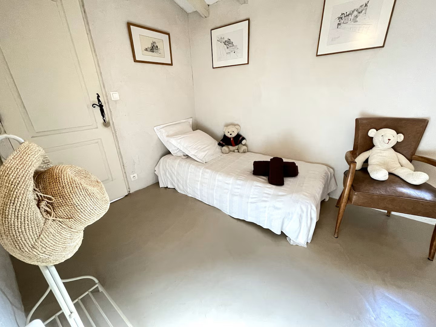La partie nuit au rez-de-chaussée se compose de trois chambres permettant une vie de plain-pied : l’une d’elles dispose de sa salle d’eau et de son WC privatifs, auxquelles s’ajoutent une seconde salle d’eau et un WC indépendant. À l’étage, deux chambres supplémentaires, chacune équipée d'une douche et de WC séparés, complètent l’espace nuit.