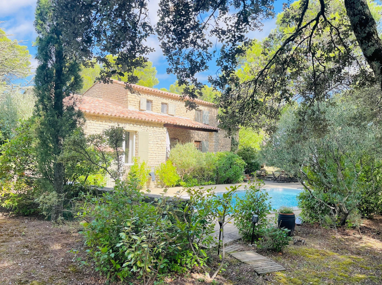 Nichée au cœur d’un magnifique parc arboré et entièrement clos de 2 500 m² avec piscine, cette charmante demeure en pierre, à l’agencement soigné et fonctionnel, offre 176 m² habitables tout confort.