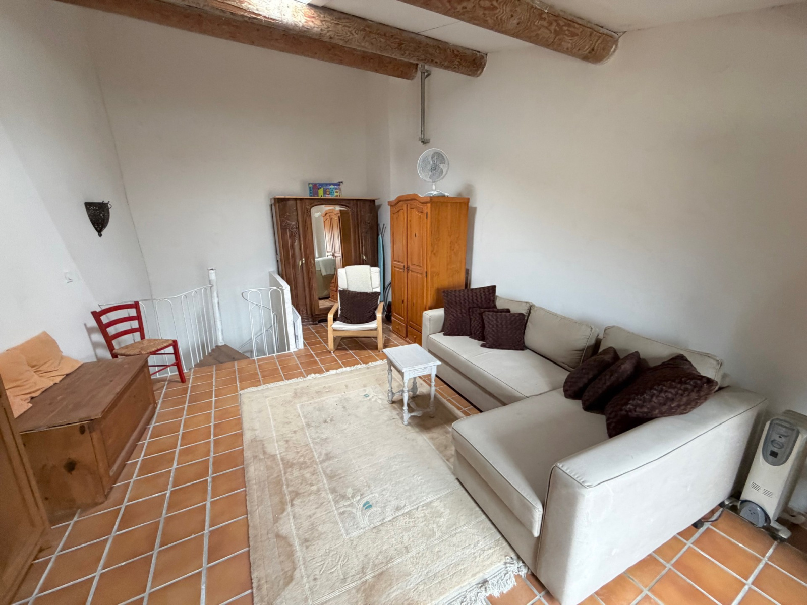 L’espace nuit comprend deux chambres ainsi qu’une salle d’eau. La maison dispose de deux WC, d’une buanderie et de prestations fonctionnelles.